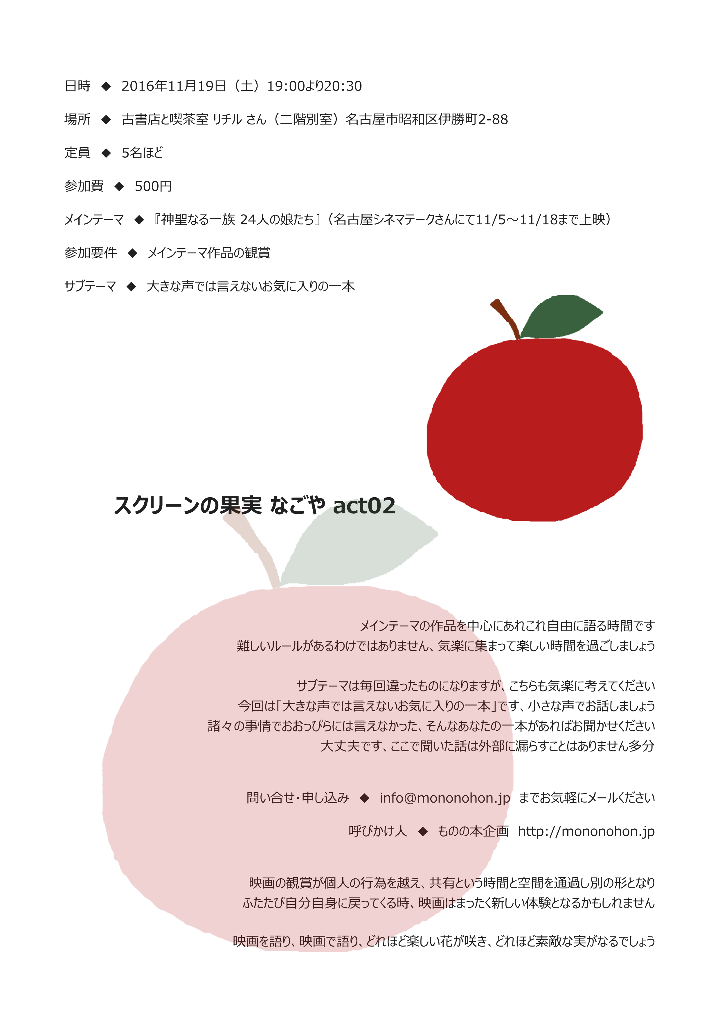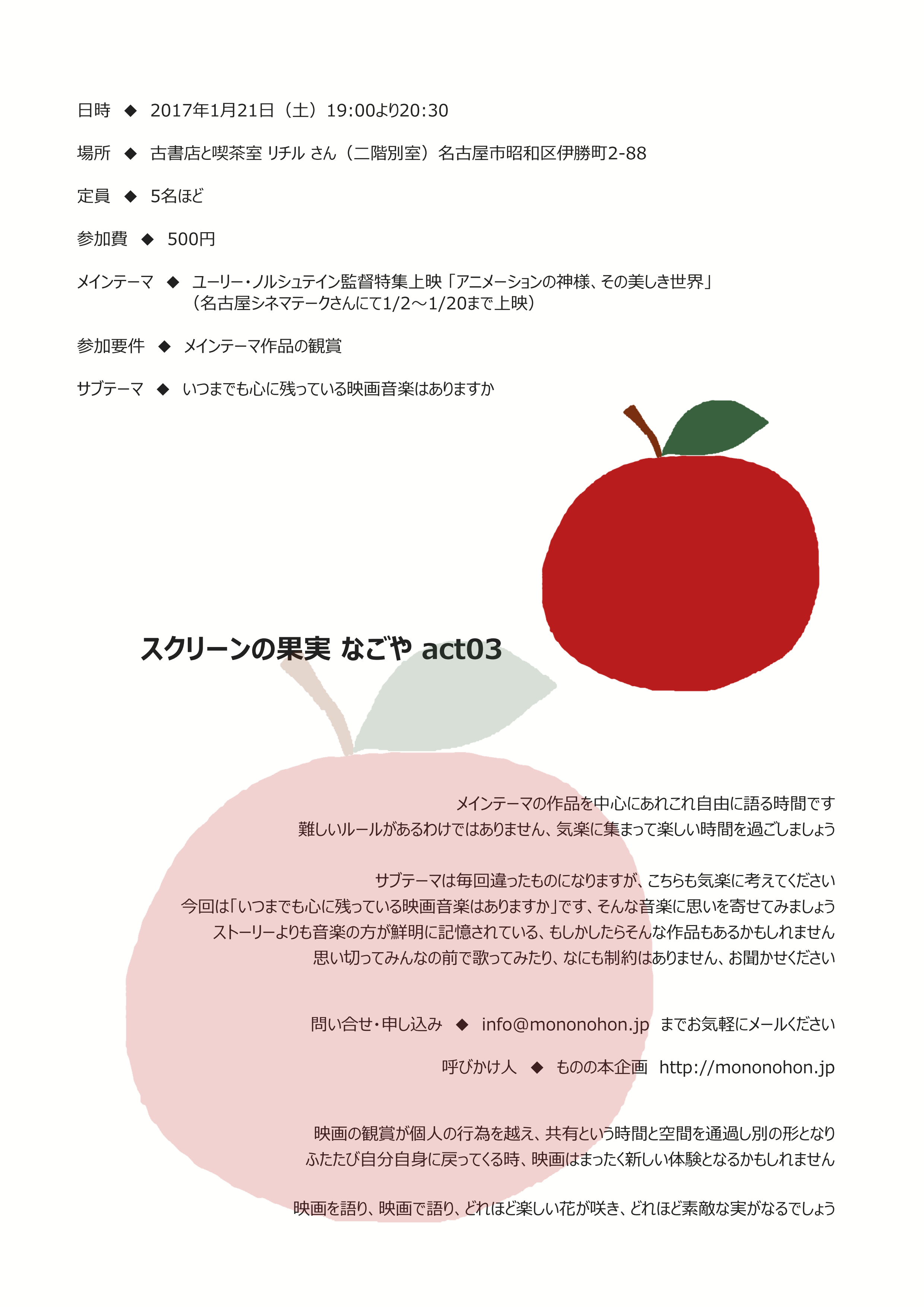 作品は名古屋シネマテークさんで上映されます